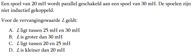 | 28-01-2018 | De vraag van ronde 1651: lndien bij een parallelkring de zelfinductie 2 maal zo groot en de Het juiste antwoord is c. |