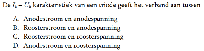 | 25-03-2018 | De vraag van ronde 1659: Een sinusvormige spanning van 100V eff heeft op t=0 een nuldoorgang van negatief naar positief. Het juiste antwoord is a. |