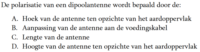 | 22-10-2017 | De vraag van ronde 1637: Door het aanbrengen van seriespoelen in een dipoolantenne zal de: Het juiste antwoord is a. |