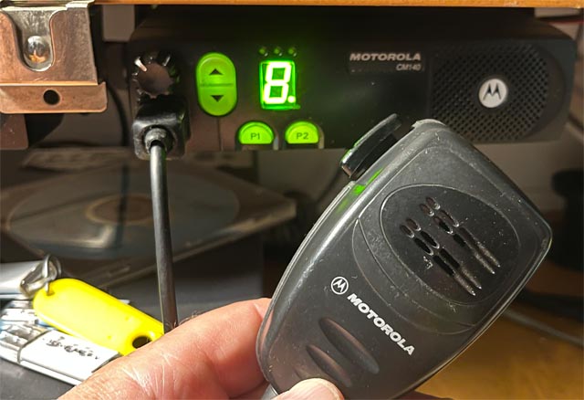 Motorola CM140 (1/10 Watt) met hierin de noordelijke repeaters en 2 simplexkanalen.